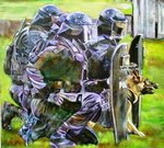 2007Schets in potlood en acrylverf over de opstelling van de mobiele eenheid met een duitse herdershond.